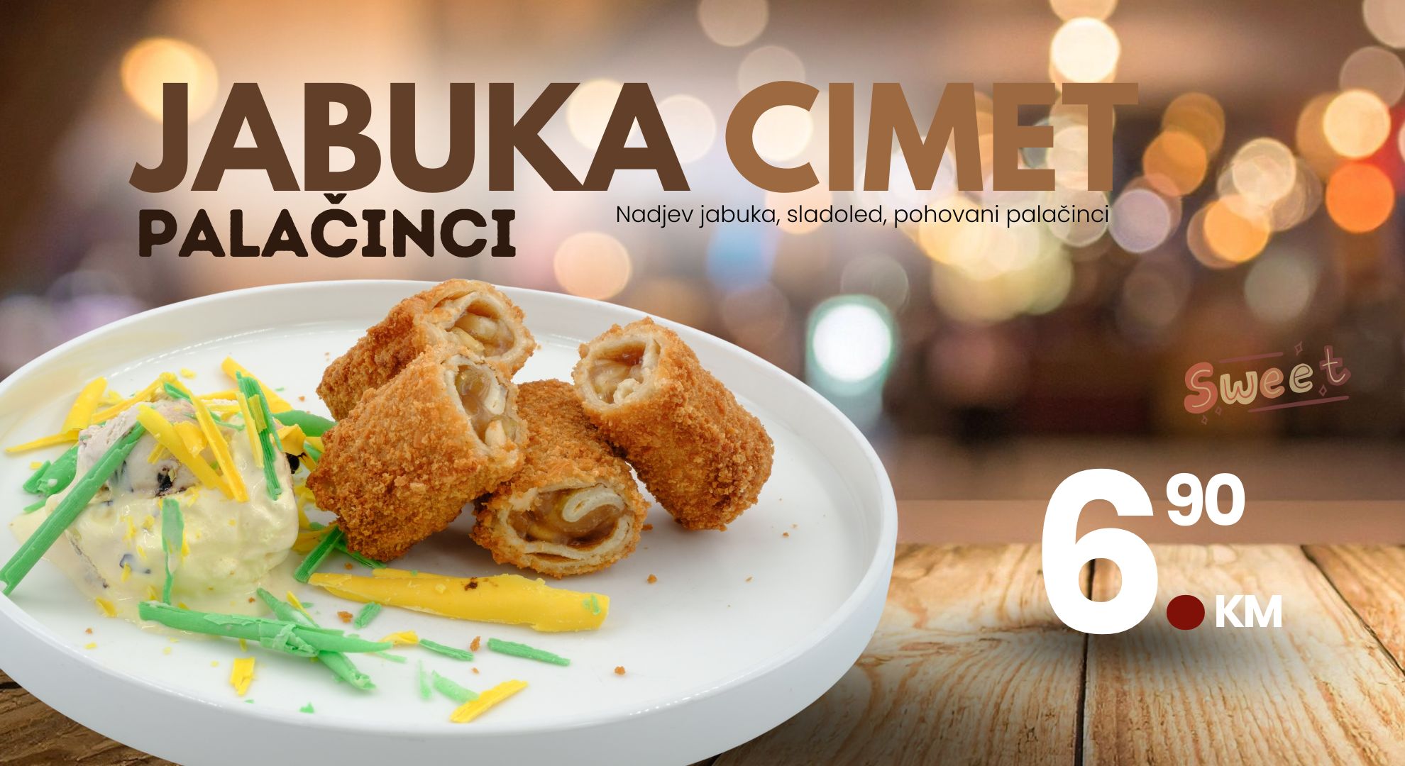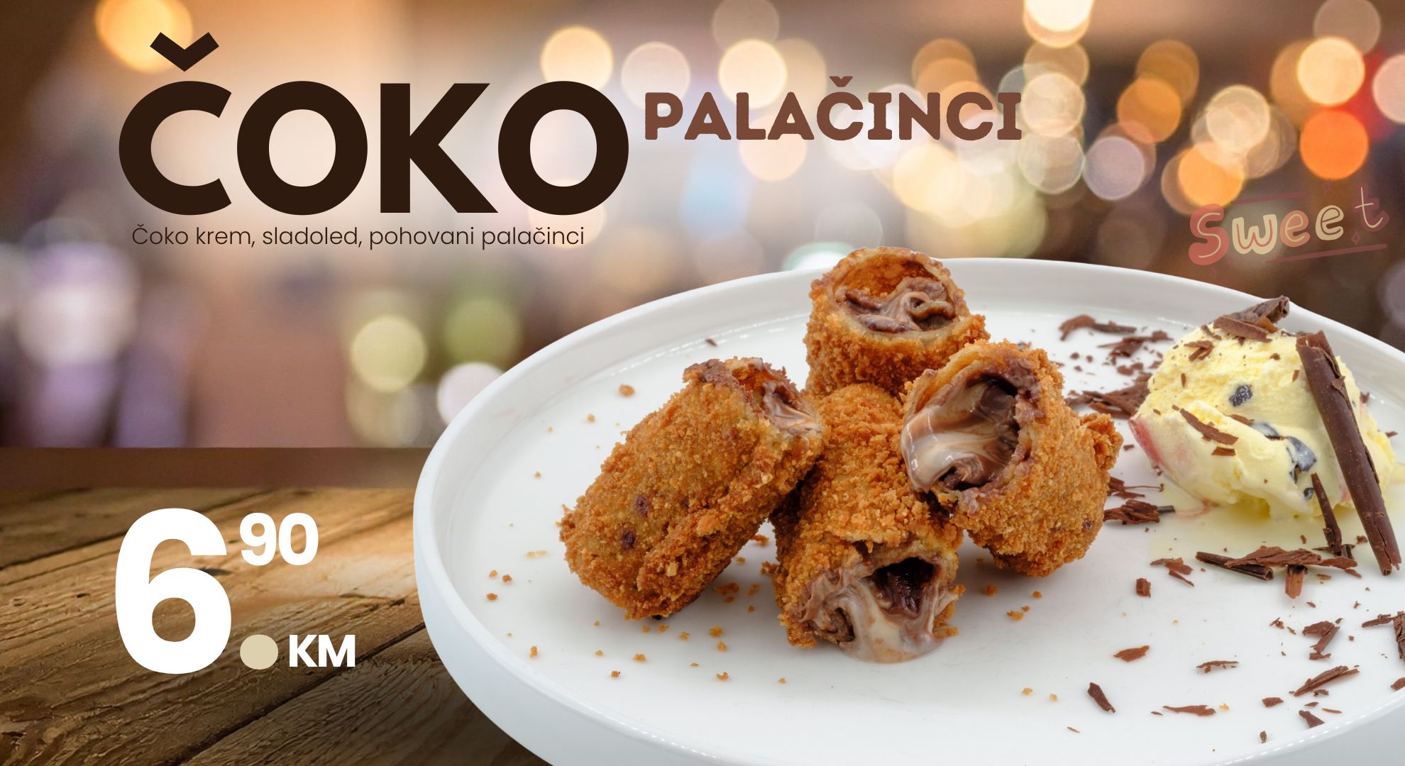 Pored slanih noviteta, ponudu smo obogatili slatkim pohovanim palačinkama koje dolaze u atraktivnim kombinacijama nadjeva i sladoleda.