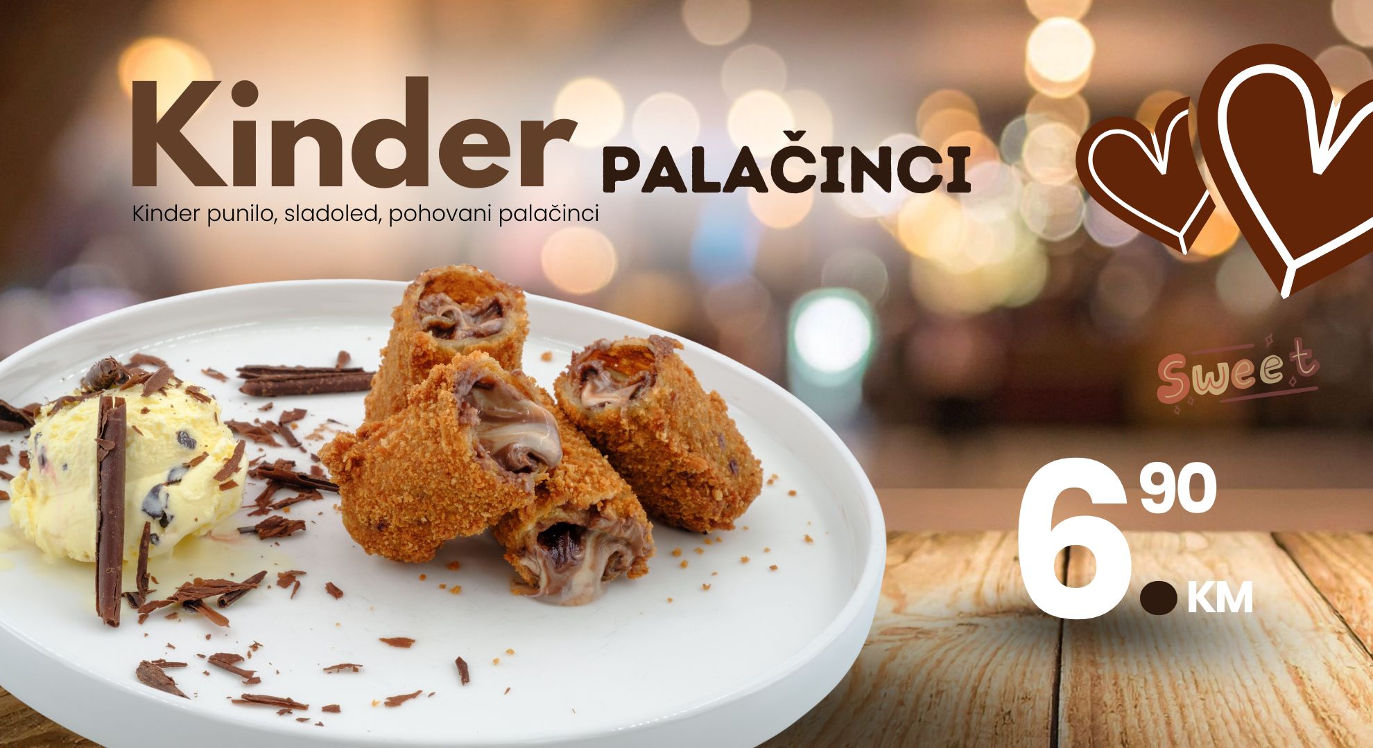 Pored slanih noviteta, ponudu smo obogatili slatkim pohovanim palačinkama koje dolaze u atraktivnim kombinacijama nadjeva i sladoleda.